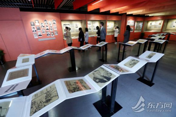 图片说明:展厅中间摆放着50余种五四时期各地散发的传单和漫画