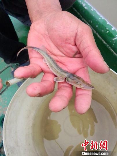 资料图:今年5月,长江南京段水域多次发现野生中华鲟幼鱼。 南京市渔政处供图摄