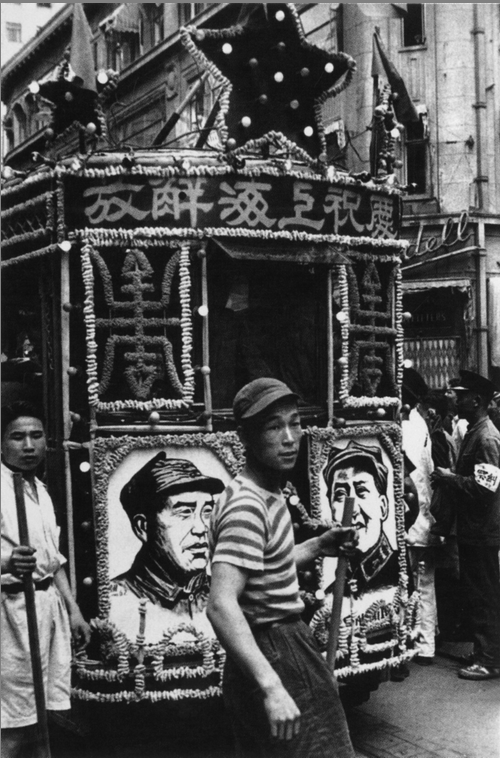 装扮一新的有轨电车在游行队伍中格外显眼(上海市档案馆藏)。