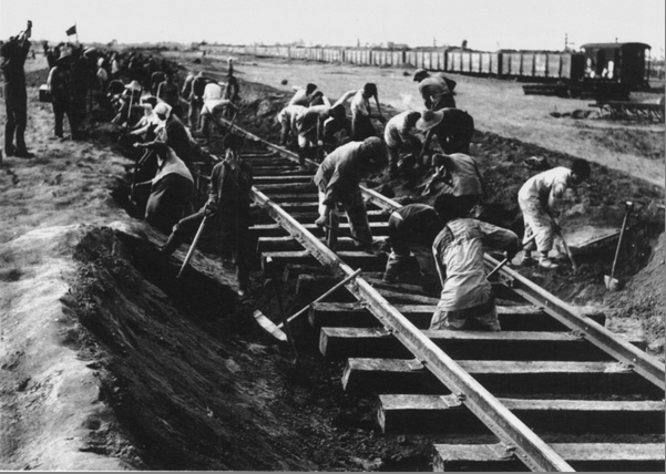 1949年7月,上海铁路工人抢修沪杭铁路(上海市档案馆藏)。