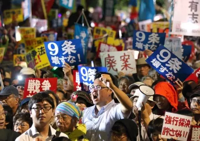 连日来,数万日本民众冒雨聚集在国会附近抗议安保法案。18日晚,日本大量民众高喊“请保护宪法第九条”“安倍下台”等口号,坚决反对安保法案。19日凌晨,仍有不少日本民众在国会前集会,反对安倍政府欲强行通过安保法案。 日本反对党使出浑身解数,包括在参院“闹堂”,试图阻止表决,使新安保法案成为废案。无奈自民党控制的执政联盟票多势众,冲垮了反对党的抵抗。这样一来,日本“自卫队”更像一支正规军队了,因为它不仅可以在日本遭到攻击时“还手自卫”,而且可以在日本没被惹着的情况下对外出手了。日本朝着“正常国家”迈出一大步。
