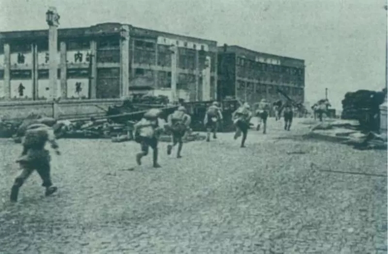 放军向西藏路桥北的残敌冲击。 出自《日月新天:上海解放亲历者说》