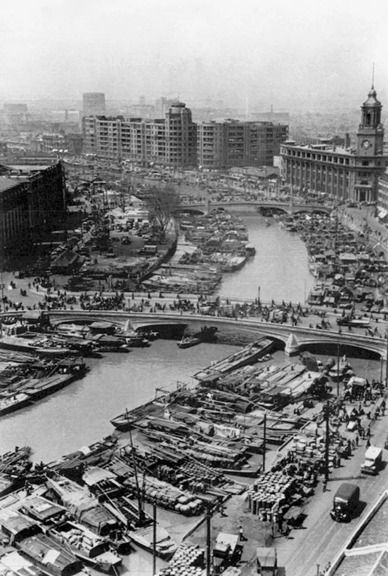 1949年5月25日,南京路上第一面红旗升起在永安公司绮云阁。出自《上海相册:70年70个瞬间》