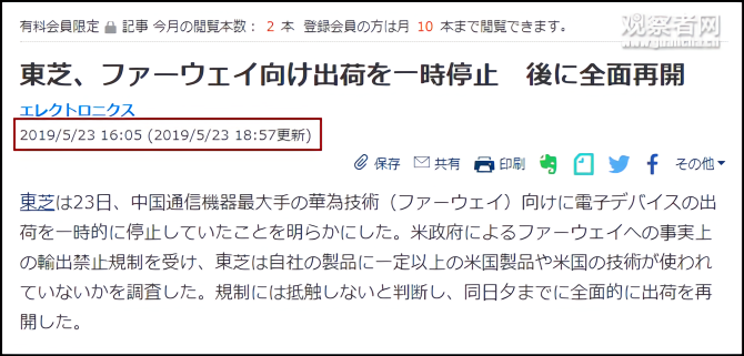 美国特朗普政府打压华为,影响波及全球。今天曾两度传出消息称,日本企业暂停向华为“供货”。但两家日本公司迅速做出回应,否定上述消息。根绝晚间最新消息,东芝已经结束自查,向华为提供的产品并不违反美国禁令,将继续向华为供货。而这距媒体称其“断供”,仅过去了不到三个小时。 日本媒体今天下午报道,东芝正自查向华为提供的产品是否使用了美国部件或美国技术,因此暂停供货。很快在晚间传出消息,东芝已经确认向华为提供的产品并不违反美国禁令,将继续向华为供货。 期间有媒体称,上海东芝公司已经在内部宣布,停止和华为的合作。东芝随后发布声明称,所谓“上海东芝公司”并不存在。“东芝集团按照美国实体名单(Entity list),正在确认部分产品是否不符合其要求,但并未停止与华为的合作。” 东芝进一步表示,“一直严格遵守所在国家和地区的法律法规开展各项业务,今后还将继续以科技为导向,为中国社会的可持续发展贡献绵薄之力”。 夏普 日本广播协会网站(NHK)今天晚间消息称,夏普也开始了自查。对于自查结果,将“根据规定处理”。 松下 今天稍早时候,《日本经济新闻》及路透社等媒体报道,松下暂停对华为供应部分产品。 松下电器(中国)公司中午在其网站及多个社交媒体发布严正声明,否认“断供”。 声明称,“目前松下集团向华为公司供货正常,对于网络媒体上所提及的‘断供’等表述均为不实之辞。华为是松下一直以来的重要合作伙伴,我们将在严格遵守松下所在国家和地区的相关法律及合规条例”。 日本专业媒体ITmedia报道,松下在2天前确实下发过内部通知,要求自查。如果存在违反禁令的情况,则要停止供应。但松下宣传部门负责人透露,“目前基本上没有涉及禁令的产品”。 另一方面,《环球时报》傍晚从松下日本总部得到类似回复。 日本总部回应称:“部分报道中有停止供给(华为产品)等表述,这与事实不符。本公司现正和华为公司进行没有违反美国法令的交易,这一点和松下中国发出的声明一致。本公司严格遵守事业所在国家和地区的法令和合规条例。” 华为日本澄清P30系列手机问题 华为日本23日就此前谷歌安卓系统“断供”一事发表声明,澄清日本消费者担忧。 声明称,“对于Huawei和Honor品牌在全球已结束销售和正在销售,以及本次在日本公布的所有智能手机与平板电脑,其使用和未来的升级、售后等均不会受到影响。敬请安心购买使用。” 声明中特别提到的“本次在日本公布”的产品,就是21日刚刚在日本举行发布会的P30系列手机。 受禁令牵连,此前谷歌对华为“断供”。华为P30系列手机原定24日在日本市场发售,这款产品究竟会不会受“断供”牵连?谨小慎微的日本各大运营商22日纷纷决定延期发售或是暂停预约。 软银旗下廉价移动通信子品牌Y!mobile原定24日发售华为P30 Lite,已从本月14日接受预约。但通知称,预约22日即刻停止。工作人员表示,将单独联系已经预约的消费者,通知预约取消。 KDDI旗下移动通信子品牌au的夏季新合约机预告中,也已经把华为P30 lite Premium机型的发售日期改为“未定”。另一子公司UQ mobile也延期发售P30 lite。 P30系列的旗舰机型P30 Pro在日本只能通过NTT Docomo入手。Docomo尽管未宣布延期发售,但在22日晚间也暂停了预约。 三大社外其他一些运营商陆续做出上述决定。乐天mobile在23日晚间宣布,延期发售P30 lite,同时暂停预约。廉价运营商Optage(mineo品牌)、Internet Initiative(IIJmio品牌)和Line mobile在24日也决定延期。