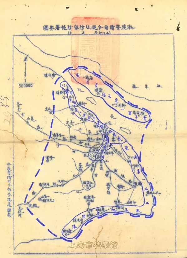 图说:淞沪警备司令部江防海防部署要图。(上海市档案馆藏) 川沙烈士陵园