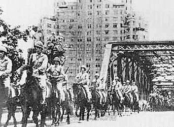 图说:人民解放军骑兵部队行进在外白渡桥上。(上海市档案馆藏)