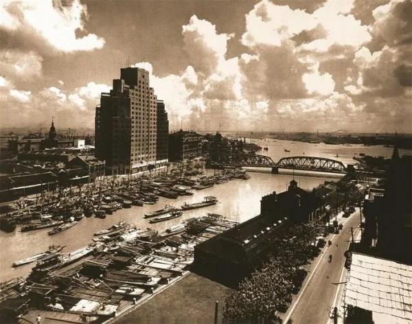 图说:解放军迅速向苏州河北岸挺进。(上海市档案馆藏) 外白渡桥桥北堍,有一座黄褐色的装饰艺术派建筑,它就像外白渡桥的闺中密友,已经与外白渡桥相伴了80余载。它就是上海大厦,原名百老汇大厦,是解放前上海仅次于国际饭店的最高建筑。上海战役时,它却是外白渡桥上最危险的火力点。