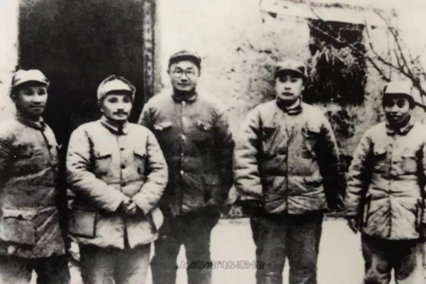 图说:总前委领导人合影。左起:粟裕、邓小平、刘伯承、陈毅、谭震林 这批客人的真实身份有来自上海战役总前委、中共中央华东局机关、华东军区机关的干部,还有各路南下干部纵队,以曾山同志为首的财经战线的队伍,以周林同志为首的政法队伍,以梁国斌同志为首的公安战线的队伍,由夏衍等同志组成的文教战线的队伍。