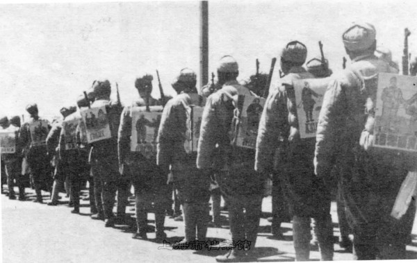 图说:解放军战士们将《入城守则和纪律》绘成图片,挂在背包上,一边行军一边学习(上海市档案馆藏) 常州:最佳作战计划在此酝酿