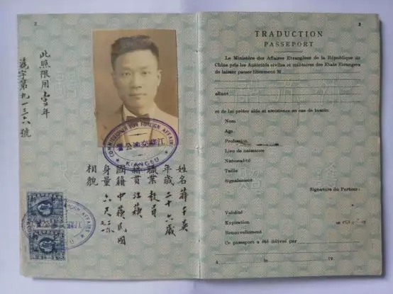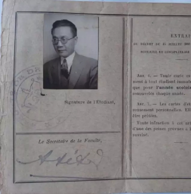 1930至1935年期间,蒋子英在巴黎大学攻读博士学位时的学生证