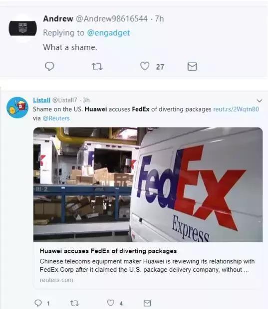 ![]() 目前,这一消息不仅惊呆了中国网友,更震惊了不少外国网友….. 其中,路透社发布在境外社交平台推特上的这一报道,就引起了不少境外网民的关注。这些网民在留言中大多是讽刺说“这下你们知道到底是谁在窃听别人了吧?”“美国国安局的监控无所不在”,以及“以后不敢用联邦快递的业务了,因为这件事说明如果你使用联邦快递,你的包裹就是美国政府的财产了……” 更有网民斥责说这简直就是“明抢”,以及美国政府“吃相太难看了”,“联邦快递不要脸”。 在另一个境外知名社交平台“脸书”上,这一消息也同样恶心到了许多境外网民。比如在一家马来西亚媒体转载这了这一消息后,评论里当地网民的留言也是一边倒地在斥责美国才是窃贼和间谍,同时也有人表示不会再用联邦快递了,因为这一做法太没有职业操守了。 有马来西亚网民还写到“这事现在越看越像是美国在监控华为,而不是华为监控美国了”,也有人认为中国政府应该要求联邦快递对此给出解释。 ![]() 在境外科技网站Engadget关于此事的报道下面,评论也都是在斥责联邦快递和美国政府。其中下面这位网民写到:“截至目前,华为已经公开了不少证据证明他们的包裹被联邦快递动了手脚,而美国迄今为止还是没有拿出证明华为监控他人的证据。” 而在路透社的“脸书”账号下,点赞最多的评论同样是对联邦快递和美国政府各种嘲讽的。下面这位获得点赞最多的外国网民就讽刺说:美国政府嚷嚷了半天华为和中国政府有关联,结果反而曝光了联邦快递和美国政府的关联…… 一位名叫James的网民则挖苦特朗普说:您真是不遗余力地在砸掉美国公司的牌子,把它们搞得如此的不可靠…… 不过,也有一些热爱美国的人士认为美国政府即便通过联邦快递窃取了华为的包裹也是理所应当的。比如下面这位热爱美国的英国女子就宣称“联邦快递和谷歌一样都是美国公司,就该遵守美国法律,倒是你华为如果真的无辜,又何必对你的包裹被联邦快递动了而大呼小叫呢? 当然,她的评论很快遭到了更多境外网民质疑说:您懂什么叫客户隐私么? ![]() 最后再回到中国方面。目前多位中国学者和专家也对联邦快递私自将华为的包裹转运到美国的做法感到匪夷所思。 复旦大学国际政治系副教授沈逸在接受我们《环球时报》记者杨升的采访时就表示,联邦快递必须对此事作出说明。 他说,联邦快递的这种举动令人不得不怀疑是不是接到了美国情报机构的指令,因为这种“劫持”物流的举动已经完全超过了正常的界限和规范。他还认为目前来看联邦快递已经“不安全”了,其在中国的相关业务也应该接受调查,而在明确其安全之前,则应该对其予以业务暂停。 而中国快递业协会原副秘书长邵钟林则表示:联邦快递就算是否认“截获”的说法,声称“传闻”与事实不符,并宣称仅仅是因为寄错,强调是个孤立事件,那也应该提供详细的情况说明,进行认真负责的调查,说清楚到底是在哪个环节出的问题导致将日本寄往中国的快递寄错到美国去,否则很难平息外界的猜测。 另外值得一提的是,曾曝光美国监控全球的“棱镜”项目的报料人斯诺登也曾表示,美国政府确实拥有“物流拦截”的能力,如下图所示…… 不仅如此,从英国政府当年对美国棱镜项目的调查来看,美国国安局还有直接渗透和劫持“供应链”的能力: 然而,为了实现打击华为等中国企业的目的,这两年一些“亲近美国情报口”的西方记者却不断把这些屎盆子扣在了中国头上…… (责任编辑:晓歌) |