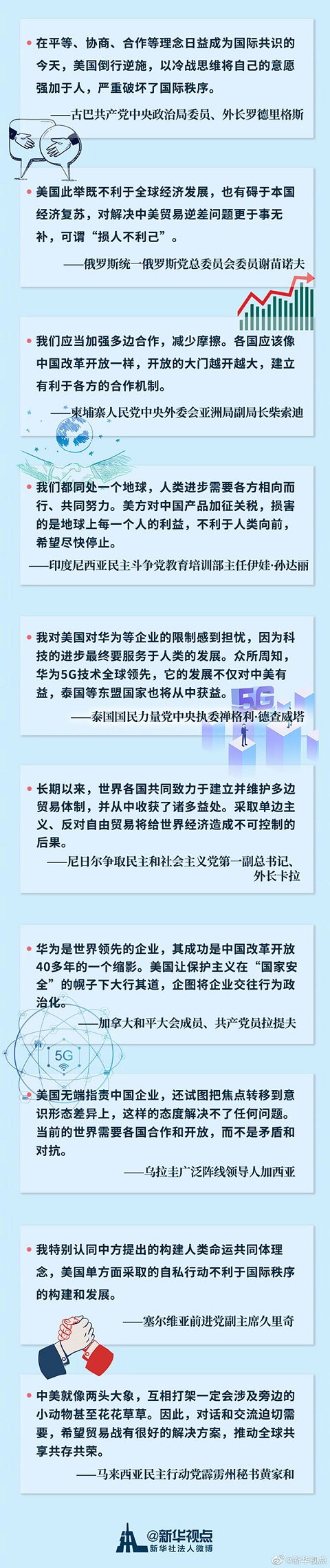 德不孤,必有邻。针对美国近期挥舞加征关税大棒、对华极限施压并打压中国企业的行为,近日参加中共中央对外联络部活动的多名外宾在接受新华社记者采访时纷纷发表看法,表达对中方的支持。听听他们怎么说。