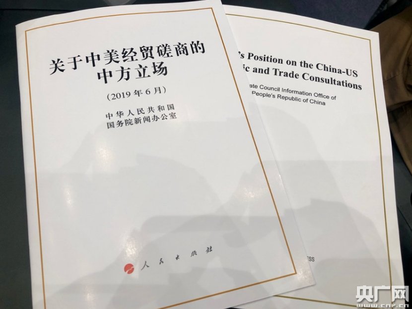 中国发布《关于中美经贸磋商的中方立场》白皮书 国务院新闻办公室2日发布《关于中美经贸磋商的中方立场》白皮书,旨在全面介绍中美经贸磋商基本情况,阐明中国对中美经贸磋商的政策立场。 这是继去年9月发布《关于中美经贸摩擦的事实与中方立场》白皮书后,中方再度就中美经贸问题发表白皮书。此次白皮书全文约8300字,除前言和结束语外,共包括三部分,分别是美国挑起对华经贸摩擦损害两国和全球利益,美国在中美经贸磋商中出尔反尔、不讲诚信,中国始终坚持平等、互利、诚信的磋商立场。 白皮书说,中美经贸关系是两国关系的“压舱石”和“推进器”,事关两国人民根本利益,事关世界繁荣与稳定。 白皮书指出,2017年新一届美国政府上任以来,以加征关税等手段相威胁,频频挑起与主要贸易伙伴之间的经贸摩擦。2018年3月以来,针对美国政府单方面发起的中美经贸摩擦,中国不得不采取有力应对措施,坚决捍卫国家和人民利益。同时,中国始终坚持通过对话协商解决争议的基本立场,与美国开展多轮经贸磋商,努力稳定双边经贸关系。