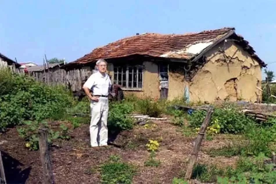作者2007年重返农场在曾居住过的旧屋前