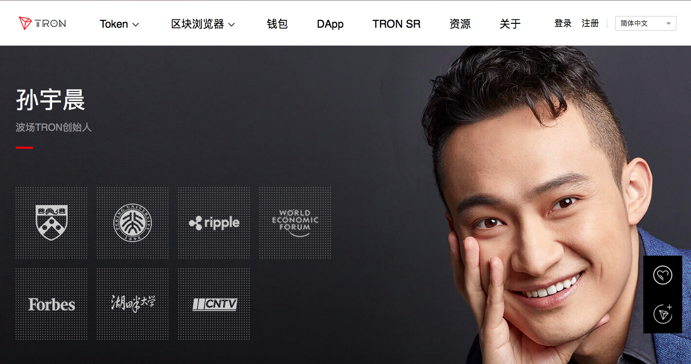 靠比特币发家,个人履历闪亮 翻阅孙宇晨的微博及简介,可以勾勒出他大致的人生图谱。孙宇晨出生于1990年7月30日,青海人,曾在北京大学就读。目前孙宇晨的微博认证身份是“马云湖畔大学首期学员、陪我APP董事长兼CEO、微博签约自媒体”,简介中则介绍了他的其他身份,包括锐波董事长兼CEO、TRON基金会创始人、BitTorrent CEO。 2011年,人民网转载《中国青年报》的文章,阐述了孙宇晨从三本到本大的奇迹故事。孙宇晨中学期间成绩并不突出,但写作不错,后来获得新概念作文大赛一等奖,从此完成逆袭,于2007年进入北京大学。 2014年广州日报的一篇报道显示,孙宇晨在从北大毕业之后,继续留美深造,硕士毕业于美国宾夕法尼亚大学。 1990年出生,如今还不到30岁,孙宇晨又是哪里来的能量,可以花上超过三千万元巨款拍下与巴菲特的这一餐? 澎湃新闻记者梳理孙宇晨的公开资料后发现,这位90后的经历颇为丰富,集合了高学历、留学生、作家、创业者等多个关键词标签。 南方日报一篇2014年的专访报道显示,2014年1月,孙宇晨创办瑞博科技,同时担任美国硅谷Ripple Laps中国区域负责人,并且已经拿到了知名风投IDG的资金。 2017年,孙宇晨创办了区块链项目波场TRON。官网资料显示,波场TRON以推动互联网去中心化为己任,致力于为去中心化互联网搭建基础设施。目前波场TRON团队成员辐射北京、旧金山、首尔以及东京等海内外多个地区。团队成员已经扩展至400余人,其中技术核心力量来自谷歌、微软、阿里巴巴、腾讯、百度等世界知名互联网企业,同时也是资深的区块链爱好者。 打开波场官网,可以看到孙宇晨的大幅照片,旁边列有一串令人瞩目的标志,显示其过人的履历:毕业于宾夕法尼亚大学和北京大学;在美国起步时加盟的Ripple;曾获得2014年达沃斯论坛全球杰出青年,2017年福布斯亚洲30位30岁以下创业者;马云创立的湖畔大学首批学员中唯一的90后;2015年CNTV中国互联网年度新锐人物。 ![]()