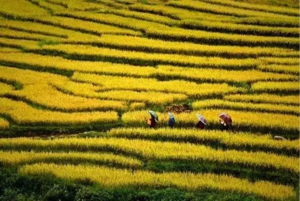 贵州糯稻稻田。黔西南部的贞丰县甚至还在2016年被中国饭店协会授予“中国糯食之乡”的称号。