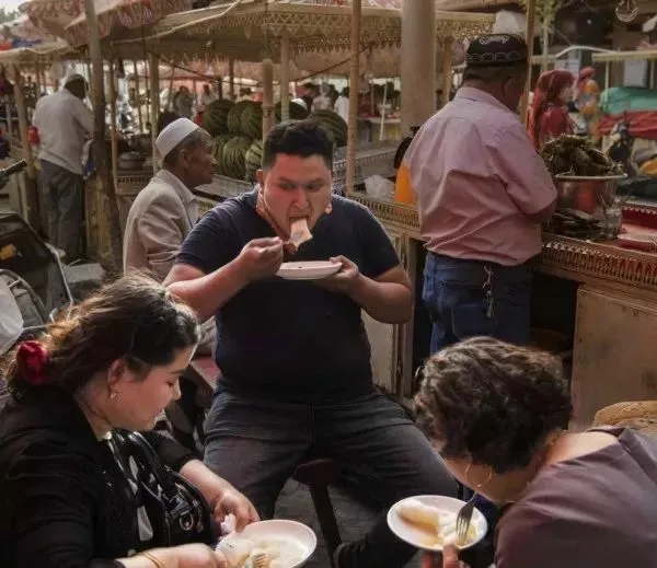 然而把这件连缀的草编物命名为“草编粽子”的说法似是而非,经不起仔细推敲。比如,没有任何史料记载过端午有佩戴粽子的习俗,而且把粽子挂在身上,也令人感到匪夷所思。于是有学者指出,这件所谓的“草编粽子”其实就是古人身上经常佩戴的香囊、荷包一类的饰物,决不能因为它形若粽子,便断定当时西域已经流行食粽,甚至与内地同化了。 内地的粽子到底何时传入新疆或许仍未可考,但在今日新疆的维吾尔族群众中确实流行着吃粽子,只不过并非端午专供,而是随时都可以食用的小吃。在维吾尔人聚居的新疆喀什的美食集市上,一年四季都可以见到卖粽子的摊位。 ![]()