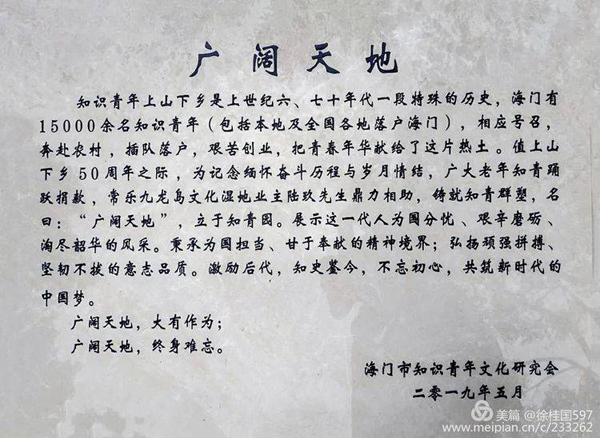 江苏省海门市知青文化研究会成立时间并不长,但组织的各项活动高潮迭起,兴建的一批艺术作品在全市各乡镇星罗棋布,获得了社会群众的广泛好评。![]() 江苏海门知青园知青群塑 继全面收集整理出当年下乡海门的15000多知青名单,建设起“海门知青史料馆”,出版海门知青回忆录二册、结合美丽乡村建设、古镇文物保护规划先后建起了颇具规模的海门知青森林、知青碑、知青石、知青亭”,这次在常乐镇九龙岛知青园又建设了“知青群塑”。 两年前的2017年,在策划知青活动规划时,中共海门市委宣传部老部长袁蕴豪提议:“纪念知识青年上山下乡五十周年,海门知青应该拿出干货、硬货、大货”,获得了一致拥护。二年来,海门知青文化联谊会经过“酝酿、动员、建设”三个阶段,355名知青捐资了121050元,制造了这尊按真人身高一比一的紫铜知青群塑。六位童稚未退、身材单薄的青年男女,肩扛、手提各种挖土、松地的锄头、铁锹、泥锨、医药箱等,意气风发、朝气蓬勃、迎着太阳,走向广阔天地。栩栩如生地将一代知青“为国担忧,为民造福”的远大志向,在广阔天地自觉锻炼成长的精神面貌和历史场景真实再现并永久地保留传承了下来。 ![]() 海门市知青文化研究会会长郭颖致词 2019年6月12日上午,由海门市知青文化研究会主办的“海门知青园知青雕塑落成典礼”在南通市海门九龙岛.海门知青园隆重举行。 来自全国各地的知青代表和海门知青代表250多人出席庆典。海门市知青文化研究会新任会长郭颖致词,欢迎来自全国各地的知青代表。前任会长张志杰介绍了“知青群塑”酝酿、动员、建设的过程。原海门县政协主席高顺昌、县委宣传部长袁蕴豪为“知青群塑”揭幕。 上海、南京、苏州、南通、福建建瓯等地各知青组织代表专程赶来,敬献锦旗、书刊、纪念章,并发表热情洋溢的致词祝贺,为知青群塑落成喝彩助威。 ![]() 《黑土情》杂志社主编翁德坤讲话 上海《黑土情》杂志社主编翁德坤代表中国延安精神研究会青年部、中国梦知青情文化艺术系列活动组委会,向海门知青群塑落成热烈祝贺,高度评价。《黑土情》杂志社全体同志为海门知青群塑揭幕题词: 知青精神,担当奉献。 红色基因,代代相传。 (《黑土情》记者徐桂国、宋爱国、薛松鹤6月12日江苏海门报道) ![]() ![]() ![]() ![]() ![]() ![]() (责任编辑:铁滨) |
