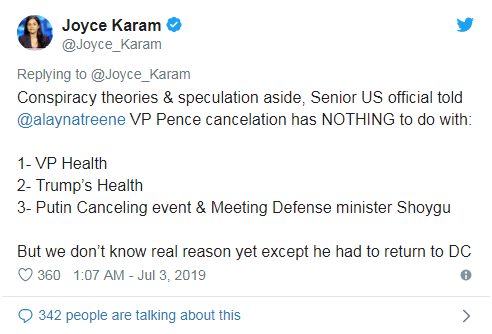 此事原本看上去与美国无关。但美国副总统彭斯2日突然取消既定的前往新罕布什维尔州的行程,却没有给出具体原因,美方只是说“有事发生”,给了外界很大的想象空间。