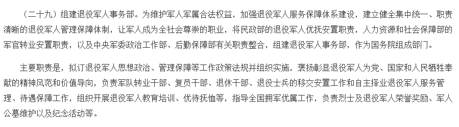作汇报发言的几个部门中,生态环境部、退役军人事务部、应急管理部是新组建的国务院部门。