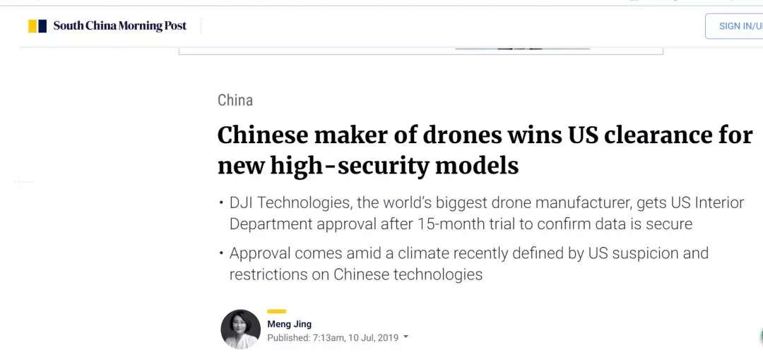 香港《南华早报》:中国无人机制造商赢得美国对新型高安全性机型的许可