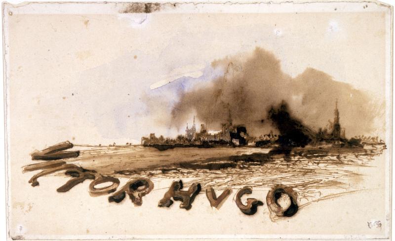 “雨果不仅是诗人,还是画家,而且是布朗热、洛克普朗和于埃可以视为同道的画家。”法国作家、评论家戈蒂耶早在1838年就做了如此评价。雨果从1834年夏季旅行途中开始他的绘画生涯,用画笔记录下沿途风景,并在之后逐渐融入想象的成分,进入精神世界的探讨。尽管在雨果自己看来,绘画仅是个人消遣,“在写两节诗的中间,得以轻松一下”,他留下的画作却超过3000幅。雨果的绘画作品中,水墨画占了很大比例,他在给诗人波德莱尔的信中写道:“我只是在这些画里混合用上点铅笔、木炭、乌贼墨、煤粉、炭黑,以及各种各样稀奇古怪的混合物,才能大体上表现出我眼中,尤其是我心中的景象。”而在热拉尔·奥迪奈看来,水墨画也是雨果中国情结的一种体现。展览特设的雨果绘画专区,精选代表性重要画作,从1834年开启的旅行画、带有签名的标志性风景画,到难得一见的为自己小说《海上劳工》所作插画等,首次为中国观众集中展现雨果绘画的独特魅力。 ![]()