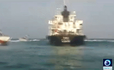 特朗普还就此事发了推特 此事将美国与伊朗本就紧张的关系再次推上风口。 据《纽约时报》消息,当天早些时候,扎里夫在纽约对记者说,上个月的事件发生后,“我们离战争只有几分钟的路程”,但“谨慎占了上风”。 也是在同一天(18日),伊朗伊斯兰革命卫队表示于上周日(14月)在霍尔木兹海峡扣押了一艘外国油轮,船上12名外籍船员被控从伊朗向外走私约100万升石油。 从伊朗伊斯兰革命卫队随后放出的视频来看,被扣押的船只是14日失踪的巴拿马籍油轮“利亚山”号。德黑兰最初说,这艘船遇到技术问题,被拖到伊朗水域修理。 视频显示,几艘伊朗船只环绕着这艘油轮,迫使它停下来: