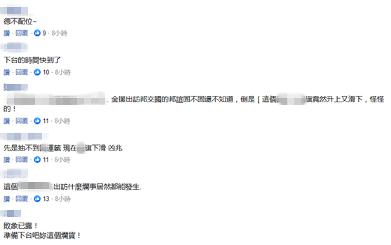 对于旗子掉落一事,蔡英文办公室发言人张惇涵声称,这与台湾的“外交”一样,会面临很多困难跟挑战,但最后还是看到台湾的旗帜在空中飘扬。 对此,有网友批评称,“发言人是阿Q再世,蔡英文倒店的前兆,也是发言人失业的前兆”。