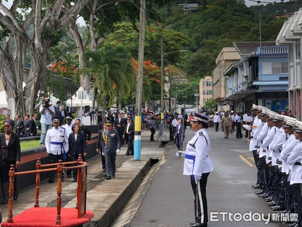 蔡英文访圣卢西亚(图片来源:台湾“东森新闻网”) 据台湾“中时电子报”“东森新闻网”等媒体7月19日报道,蔡英文18日上午到圣卢西亚国会发表演说,不过,场外却状况不断。先是在等候蔡英文到场时,疑似因为天气炎热,一名女性礼兵出现身体不适昏倒,随即被搀扶离开休息。 紧接着在欢迎仪式上,升完圣卢西亚国旗后换升“青天白日满地红”旗,但旗子升上去之后又滑了下来。“东森新闻网”形容当时情况称,旗子是“硬生生掉落”。 报道称,圣卢西亚升旗模式是先将旗帜折成一包,升至旗杆最顶端后,旗手会轻轻拉扯让旗面张开。而一位圣卢西亚旗手在将“青天白日满地红”旗升到旗杆顶端并轻拉要张开旗子时,整包掉落在地,随后旗手将旗杆拔起并放倒,直接将旗挂上。 这一事件传回岛内后,有网友称蔡英文“德不配位”、“下台的时间快到了”、“败象已露!准备下台吧”,还有人讽刺这是“天意”。