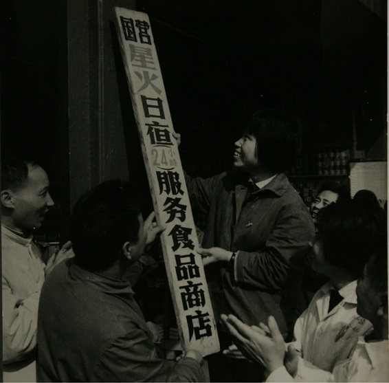 没有“星火”的时候,农民兄弟夏天一身汗,冬天一身霜,半夜里忍饥挨饿给城里供应新鲜蔬菜。周边居民下班后想买点东西也很难。因此,开在市中心南来北往六条“通衢大道”口的“星火”,很快就积聚了“爆棚”的人气。 首先是农民兄弟被感动了,当他们累得满头大汗时,星火日夜商店里备着茶水给他们喝,还能有热水擦把脸,再买点点心垫垫饥。随着星火里的商品和服务越来越多,每到夜晚,到店里来的市民也多了。由于当时凭票供应的商品较多,月底票证就要过期,所以,每当月底的晚上,不足60平方米的店堂被挤得水泄不通,有买烟的,有买白砂糖的,有买肥皂的,排队最长的要算买公交月票的队伍,一直要排到西藏路桥的桥堍。“月底这一天,我要从白天上班一直做到深夜顾客的队伍消失才能下班,这个时候,我已经忘掉了一天的疲劳。” ![]()