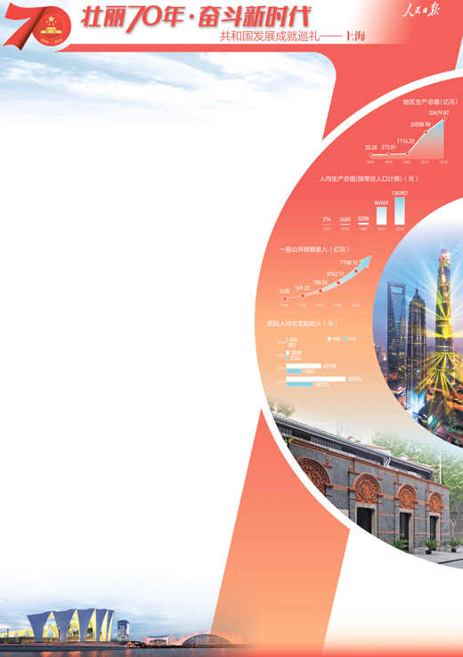 ![]() 上海作为党的诞生地、伟大梦想的启航地,在党中央的坚强领导下,与祖国同行,与时代同步,实现了翻天覆地的巨大变化,取得了举世瞩目的辉煌成就。 在新的长征路上,我们决心在以习近平同志为核心的党中央坚强领导下,锐意进取、开拓创新、接续奋斗,为实现“两个一百年”奋斗目标和中华民族伟大复兴的中国梦、为创造上海更加美好的明天不懈奋斗。 新中国成立70年来,党带领我们国家实现从落后时代到赶上时代、引领时代的伟大跨越,带领中华民族迎来了从站起来、富起来到强起来的伟大飞跃。上海作为党的诞生地、伟大梦想的启航地,在党中央的坚强领导下,与祖国同行,与时代同步,实现了翻天覆地的巨大变化,取得了举世瞩目的辉煌成就。特别是党的十八大以来,全市上下坚持以习近平新时代中国特色社会主义思想为指导,深入贯彻习近平总书记对上海工作重要指示要求,深入贯彻落实党中央各项决策部署,加快建设国际经济、金融、贸易、航运、科技创新“五个中心”,加快建设具有世界影响力的社会主义现代化国际大都市,推动各项事业发展迈上新台阶。 综合实力持续跃升。1949年,全市生产总值和人均生产总值只有20.28亿元和274元。2018年,全市生产总值32680亿元;人均生产总值13.5万元;一般公共预算总收入达1.76万亿元,以不到全国1‰的土地,贡献了全国近1/10的税收。以大飞机、中国芯、创新药、智能造、未来车等为代表,上海科技水平和产业体系具备了代表国家参与国际竞争的实力。 城市功能脱胎换骨。解放初期,全市只有44条公交线。经过70年建设发展,大桥飞架、机场落成、地铁穿行、高铁飞驰。全市公交线路1543条,高速公路和城市快速路超过1000公里,轨道总里程突破700公里,跃居世界城市首位,一个枢纽型、功能性、网络化的基础设施体系初步形成。更重要的是,上海综合服务功能和集聚辐射能力不断增强,去年口岸货物进出口总额1.29万亿美元,跃居世界城市首位;港口集装箱吞吐量4200万标箱,连续9年位居世界城市首位;航空旅客吞吐量1.17亿人次,位居全球第四;金融市场交易额超过1600万亿元,成为世界上要素市场最齐备、中外资金融机构最集聚的城市之一。 人民生活极大改善。解放初期,全市人均住房面积只有3.9平方米,人均期望寿命不到40岁,人均绿化面积只有“一双鞋”大小。2018年,全市居民人均可支配收入为6.4万元,人均期望寿命提高到83.63岁,人均住房建筑面积提高到36.7平方米,人均绿化面积提高到8.2平方米。从无到有建立起覆盖城乡居民的社会保障体系,不断加大优质文化供给,着力改善生态环境,统筹推进底线民生、基本民生、质量民生。今天的上海,传统和现代交相辉映,城市和乡村融合发展,“城市,让生活更美好”的愿景正成为现实。 70年来,上海干部群众谱写了社会主义现代化建设事业的壮丽诗篇,演绎了中国特色社会主义的生动实践,使上海成为我国改革开放的前沿窗口。今天,一个风华正茂的上海,一个日新月异的上海,正焕发出蓬勃的生机活力,展现出令人鼓舞的发展前景。开放、创新、包容已经成为上海最鲜明的城市品格,意气风发的上海人民正日益展现出海纳百川、追求卓越、开明睿智、大气谦和的精神风貌。 中国特色社会主义进入新时代,以习近平同志为核心的党中央为上海发展标识了新的方位,赋予了新的使命,开启了新的征程。踏上新的长征路,我们要以习近平新时代中国特色社会主义思想为指导,坚持面向世界、面向未来,坚持对标国际最高标准、最好水平,推动高质量发展、创造高品质生活,奋力书写新时代上海发展新传奇,当好全国改革开放排头兵、创新发展先行者。 新时代新征程,我们要勇担国家战略,全面落实重大任务。上海是全国最大的经济中心城市,必须始终牢记总书记的重要指示要求,切实增强大局意识、全局观念,把上海未来发展放在中央对上海发展的战略定位上、放在经济全球化的大趋势下、放在全国发展的大格局中、放在国家对长江三角洲区域发展的总体部署中来思考和谋划,并将这“四个放在”作为做好一切工作的基点,跳出上海看上海,立足全国看上海,在服务全国中发展上海。我们要按照“一体化”“一盘棋”要求,发挥龙头带动作用,加强分工合作,与苏浙皖共同推进长三角更高质量一体化发展,打造全国发展强劲活跃增长极。我们要把上海自贸试验区新片区打造成为更具国际市场影响力和竞争力的特殊经济功能区,把长三角生态绿色一体化发展示范区打造成为贯彻新发展理念的新标杆、一体化体制机制的试验区、引领长三角更高质量一体化的新引擎,形成新片区和示范区带动上海一东一西“两翼齐飞”的发展格局,更好发挥对内、对外开放“两个扇面”的枢纽作用。我们要通过在上交所设立科创板并试点注册制,打通金融资源服务科技创新的通道,促进上海国际金融中心和科创中心联动发展。我们要把中国国际进口博览会打造成为服务全国全球的进口商品集散地,加快贸易升级和消费升级。 新时代新征程,我们要坚持解放思想,推动改革开放再出发。面对世界百年未有之大变局,我们必须准确识变、科学应变、主动求变,坚持以开放倒逼改革,把改革开放向纵深推进。我们要推进更高起点的深化改革,坚持以经济体制改革为牵引,强化改革系统集成,全力抓好司法体制、教育