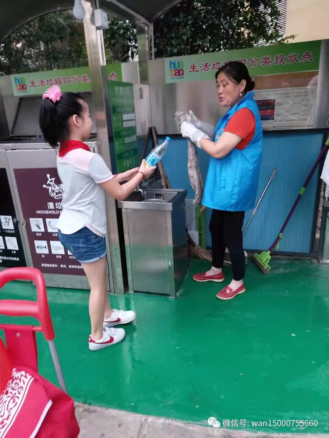 今天就有一位小朋友小手拉着大手,走进垃圾分类志愿者行列。奶奶辛苦了。她就是我们农场知青杨国强的外孙、现居住在爱博家园六村的小学三年级小朋友,她叫杨辰琳。小辰琳不但是一位能歌善舞的小朋友,经常上台演出,而她更有一颗小小的爱心。