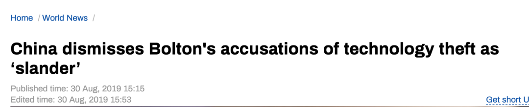 美国国家安全顾问博尔顿,近日访问乌克兰时再显“对华鹰派”本色。他妄称中国窃取美国军事技术,只因他觉得中国第五代战机和F-35“长得一样”。 对此,据“今日俄罗斯”8月30日消息,中国驻乌克兰大使杜伟回应:博尔顿关于中国窃取美国军事技术的声明“纯属诽谤”。