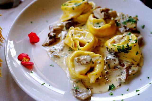 意大利菜,面饺配蘑菇。