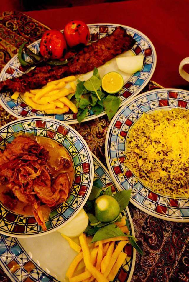 在伊朗餐馆吃烤肉。