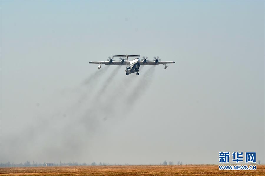“鲲龙”AG600在珠海金湾机场起飞(2017年12月24日摄)。新华社记者 梁旭 摄