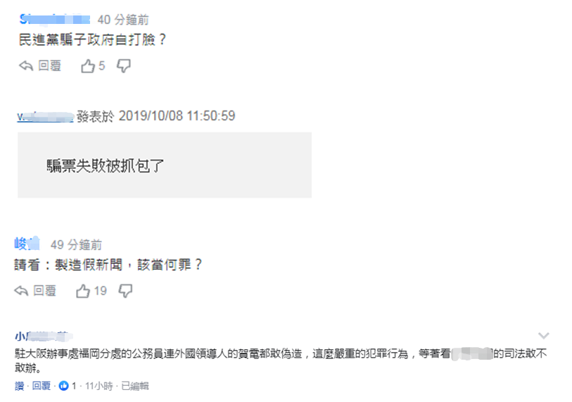 对此,岛内网友讽刺,民进党骗子当局自打脸;骗票失败被抓包了;还有网友质问,制造假新闻,该当何罪?"驻大阪办事处福冈分处"连外国领导人的贺电都敢伪造,“这么严重的的犯罪行为”,等着看司法敢不敢办。