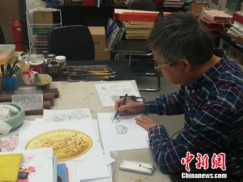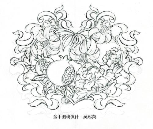 吴冠英演示图案绘制过程。钟欣 摄 吴冠英使用石榴、百合、牡丹三种象征“团结、和谐、繁荣”的鲜花,组成一个心形“团花”图形。再饰以缠枝纹结构的飘带,在心型“团花”图案上,又加了中国结的元素,表达“民族团结同心,普天欢颂国庆”的美好寓意。 “围绕这个圆形,有56朵石榴花。此外,还要留出纪念币面值‘2000元’字样,以及‘中华人民共和国成立70周年’的文字的位置,这都是在设计里面要考虑的元素。”吴冠英说。 最后被采用的,是方案二。他一边现场手绘了一幅方案二的图案草稿,一边解释其中元素的意义,“我们传统的团花图案代表了圆满,在这里表现团结一心的寓意,百合象征和谐平安,牡丹寓意富贵吉祥……” “图案富有象征意义,加上它本身呈现的美和丰富内涵,像写诗一样会给人们留有想象余地。观众在欣赏时会不自觉产生代入感,觉得它雅俗共赏,既能看懂,又能感觉到跟传统文化一脉相承。”吴冠英如此说道。 其实,包括这一次的设计项目在内,在以往的设计理念中,吴冠英都很注意中国传统文化元素的运用,从北京2008年第29届奥运会吉祥物“福娃”,到残奥会吉祥物“福牛乐乐”,以及3套生肖邮票和5套《拜年》邮票等等,几乎都是如此。