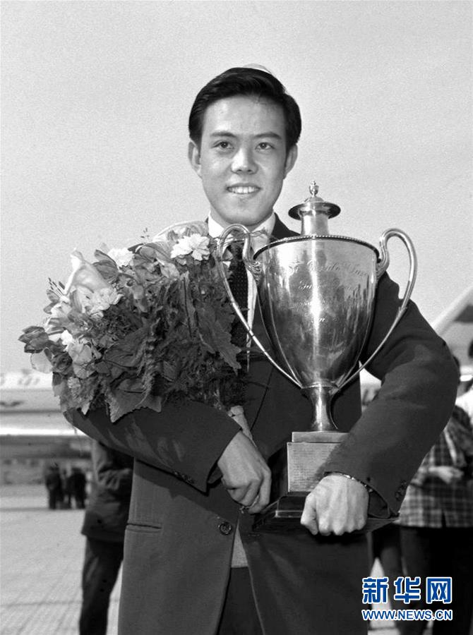 1959年4月5日,容国团在德国多特蒙德举行的第25届世界乒乓球锦标赛男子单打决赛中战胜匈牙利选手西多,获男子单打比赛冠军。图为1959年4月22日,容国团载誉归来。 新华社记者张赫嵩摄