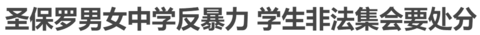 据港媒报道,30日,香港圣保罗男女中学校董会向家长公开发信,明确表示所有人士均不可利用学校作平台,在校内宣示个人政治立场或主义,未经校方事前书面同意,不可以以学校名义在校内举办相关活动。违者一如既往视为违反校规,将面临纪律处分。