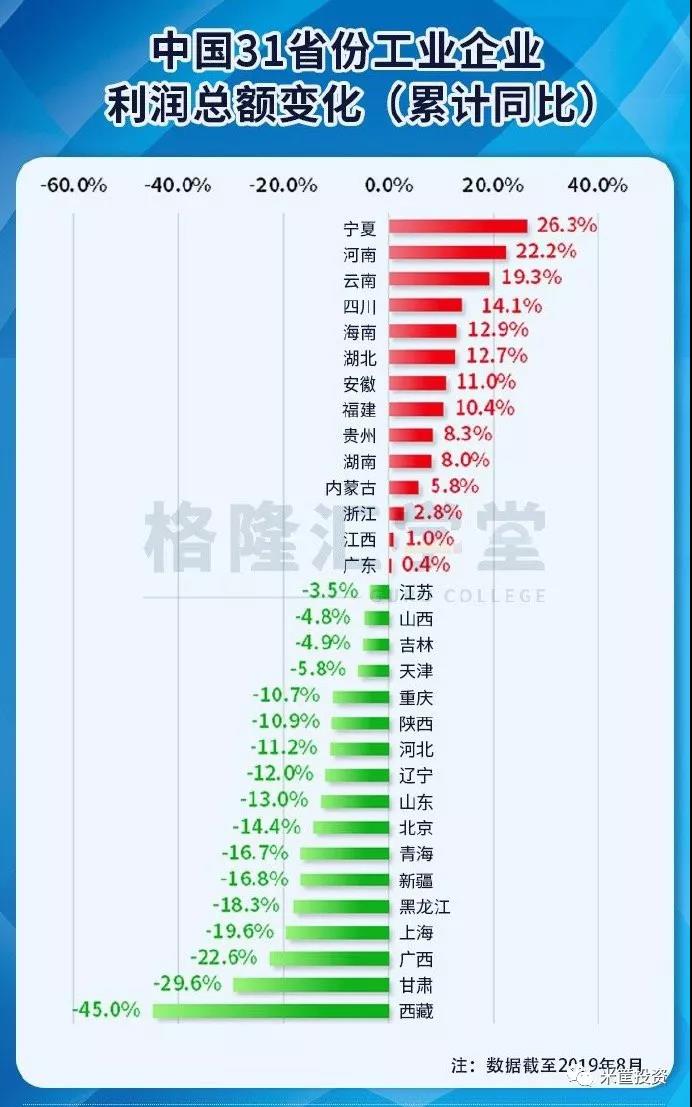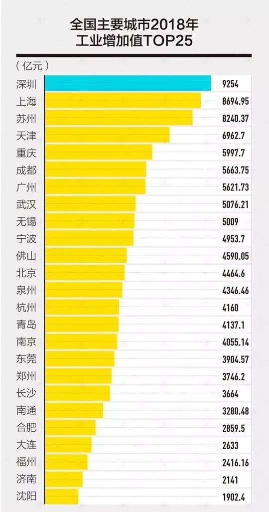 ![]() 从“工业革命”以来,工业化无疑是世界各国发展的主旋律,尤其是对仅仅成立70周年的新中国来说,从兵工到民用,从轻工业到重工业,从沿海到内地,工业化对传统农耕社会带来的改变,可谓翻天覆地。 制造业代表的实体经济,是中国经济的基本盘,关乎着国际竞争地位以及百姓的细碎生活。 但近年来,中国经济结构变化,以及带来的工业格局的变化,值得一番探讨。 1\工业失速 2019年,仅仅剩下两个月的时间。最新公布的前三季度经济数据,6%的经济增速,再次创下新低。 而其中,工业经济的数据表现,也不太乐观。 前三季度,规模以上工业增加值同比增长5.6%,创下2016年一季度以来的最低值。 好在9月份的当月增速5.8%,比8月份略有提升,但总体情况还是向下走的趋势。包括工业机器人、金属切削机床等产品的产量持续下滑,汽车制造业、农副食品加工业、纺织业等行业的表现都不太好。 而更令人担忧的是,工业企业利润的下滑。 1-9月,全国规上工业企业实现利润总额45933.5亿元,同比下降2.1%,从今年2月份以来一直处于负增长状态。 在41个工业大类行业中,30个行业利润总额同比增加,11个行业减少。其中不少行业的利润增速甚至出现了大幅下滑。 比如汽车制造业,下降16.6%; 比如造纸和纸制品业,下降20.2%; 比如有色金属矿采选业,下降23.6%; 比如黑色金属冶炼和压延加工业,下降41.8%; 比如石油、煤炭及其他燃料加工业下降53.5%; 相比较前两年,2017年利润下降的行业仅有2个,2018年扩大到7个,到了今年8月出现最多的13个行业利润下降。 利润,是企业生存的根本,红线一破,出清时刻就会到来。 外资撤离,就是这种情况下的另一个难题。 上涨的劳动力成本、较低的利润空间,让他们的生产阵地,无一例外都搬到了东南亚。利润面前,谁都没有资格充当上帝。 2\谁是工业第一省? 在如此大环境下,中国各省份的工业又表现如何呢? 按照规模以上工业生产总值比较,江苏、山东和广东三者都超过了10万亿元,是当之无愧的工业大省。 另外,超过5万亿的还有河南、浙江和河北三个省份。而最低的西藏,仅有200亿出头。这其中的工业布局落差极其大。 这其中,有人或许会对河南存在疑惑。河南这个农业大省,工业也这么强? 其实,河南的工业实力主要集中在两大产业——装备制造和食品制造,两个产业的规模都达到了万亿级。比如以洛阳一拖、中铁工程装备、长垣起重机等为代表的装备制造业,比如以双汇、三全、思念等为代表的食品加工制造业,都是行业中的翘楚。 再加上以宇通为代表的的汽车制造业、以富士康为代表的的通信制造业,河南的工业实力其实并不差,只是被加上了农业大省的标签,一时被人忽略罢了。 而若按照工业企业利润来比较,谁又是最能赚钱的省份? ![]() 31个省份的工业企业利润总额中,前三位依旧是老熟人,但顺序有所变化。江苏依旧是第一,广东则反超山东排在第二位。 而江苏和广东,也是仅有的两个利润总额超过8000亿的省份,排在第三的山东,还不到5000亿,差距十分明显。 但若是按照利润增速对比,却又是另一番景象。 今年前8个月31个省市的利润增速中,14个省份正增长,但17个省份出现负增长,可谓喜忧参半。 其中,增速最快的竟是宁夏和河南,增速都超过了20%。而云南、四川、海南、湖北、安徽、福建等6个省份的增速,也超过10%。 江苏、广东和山东三个工业大省今年的表现,都不尽如人意。里面排在最前面的广东,利润增速只有0.4%,排在14位。而江苏和山东都出现了负增长,尤其是山东,降幅达到13%,新旧动能切换的任务,十分艰巨。 利润负增长的还有山西、吉林、河北、辽宁等传统工业大省,产业结构转型的压力,比想象中还要紧迫。 3\谁是工业第一市? 那么,中国工业的城市格局,又是什么图景呢? 根据第一财经公布的2018年25个大中城市的工业增加值排名,深圳以9254亿的规模排在第一位,也是唯一一个超过9000亿的城市,领跑全国。 ![]() 上海和苏州则都超过了8000亿,排在二三位。自从苏州和新加坡共建苏州工业园区以来,苏州的工业实力便飞速前进,尤其是通信、计算机设备制造业,在全国也是首屈一指。尽管近些年不少外企撤离苏州,但底子还在。 天津、重庆、成都和广州的工业增加值介于5500亿元到7000亿元之间,分列四到七位。天津的工业实力并不差,但近年来经济挤水分,增速下降不少。反倒是重庆和成都,依靠电子信息制造业的突出表现,增色不少。 而从前十名来看,除了天津之外,9个城市都位于南方,南北经济的差距,工业实力也是例证之一。 9个南方城市中,又有7个城市位于长江经济带,从中上游的重庆到下游的上海,长江流域也成为中国工业实力最强的区域。 而东北则没有一个城市入围前十。这里面排名最高的大连,工业增加值只有2633亿,以传统重工业为标签的东北,有些落寞。 反观排名较高的城市,则都是以通信、计算机、电子设备制造等高新技术产业为主,或者增速较高的城市,比如苏州、重庆、佛山等。 产业转型,对那些以传统制造业为主的城市,显得更为重要。 4\转型之路 而产业转型,也成为贯穿整个中国工业史的关键词。 观察中国的一二三产业占比变化就能发现,建国之初,温饱问题是头等难题,因此,第一产业的农业依旧占据很高的比例。1984年以前,第一产业的占比多数在30%以上;到2018年,这一比例降到了7%左右。 而到了七八十年代,第二产业