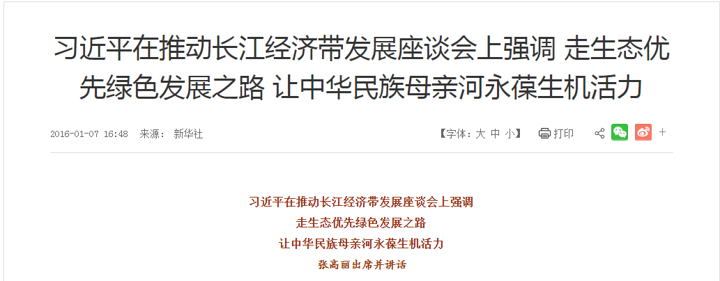 在2016年的座谈会上,习近平强调,“沿江省市和国家相关部门要在思想认识上形成一条心”。 在去年的座谈会上,习近平提到,推动长江经济带发展是“关系国家发展全局的重大战略”。 高层对长江经济带的评价是: