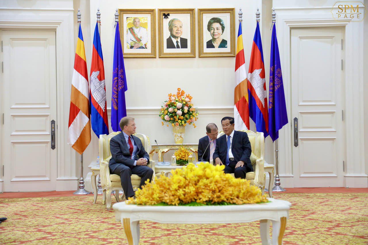 21日,洪森(右)会见美国驻柬大使 图源:洪森脸书 西方国家一直以拿柬埔寨人权情况说事,不断向洪森施压,欧盟甚至威胁称要取消对柬埔寨的贸易优惠。在柬埔寨指责美国阴谋推翻洪森之后,美柬关系也开始转坏。 21日下午,美国驻柬大使拜见洪森时,向他转交了特朗普的两封信件。 洪森在会谈上表示:“过去从未接到过美国政府这样的信函。” 特朗普总统强调了美国政府的立场,愿同柬埔寨增进两国长期以来的友好合作关系,坚决支持柬埔寨,特别是尊重柬埔寨的主权,不支持更换柬埔寨政权。 特朗普承诺,美国将协助维护柬埔寨的国家主权,继续帮助柬埔寨建立一个强大、透明的金融管理体系,防止洗黑钱和提供技术援助,进而增进美国和柬埔寨的友谊,增强双方的互信。 特朗普在第二封信中邀请洪森参加2020年上半年在美国举行的美国-东盟特别峰会。 洪森在会谈中向美国大使表示,非常赞同美国特朗普总统的倡议,此峰会有助于促进东盟和美国在各个领域的合作关系,以更好地造福美国和东盟人民。洪森还表示将与其他东盟国家的领导人交谈,以支持美国-东盟特别峰会取得成功。