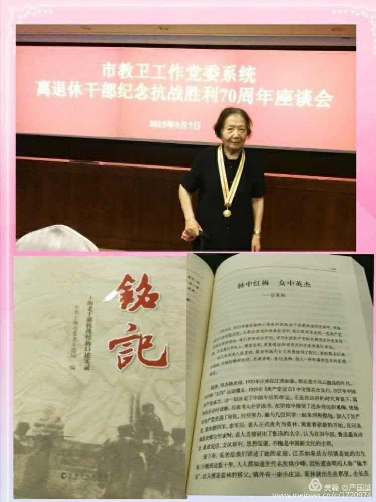 一百岁的莫林老师,受人敬重。她精武善文,一生荣光。年青时勇斗敌顽,解放后执政为民,离休后勤耕文坛。 (您的身影似一面红旗,您的名字是一个传奇) ![]() 我们敬仰她的战斗青春,1940年时,二十岁的她就成为中国共产党的一员,参加了新四军。她手持双枪、英勇善战、威震敌营。 (莫林被捕时的豪言壮语:活埋不要紧,主义固长存。) ![]() (莫林当领导干部时的行为准则:晨上楼栏陈远志,夜深灯影起民忧) ![]() 我们敬羡她的夕阳岁月。1985年离休后,潜心文学诗词创作,发表过诸多有影响的作品,94岁时成为上海市作家协会会员。 (莫林离休后的精彩人生:诗伴人生花锦簇,冰清玉洁留风骨。) (书香“梅庐”,不老诗魂) ![]() 今天150余名嘉宾及会员代表出席了诗会。用赋诗诵词歌声这一独特的方式,来庆贺百岁诗人莫林的华诞。我们衷心祝福莫林大姐健康快乐长寿!!! ![]() (责任编辑:晓歌) |
