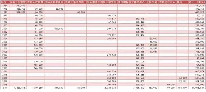 公开数据显示,充当反修例急先锋的香港本土NGO“香港人权监察”自1995年开始接受NED拨款,多年来接受资金共近1500万港元。 不知何故,2014年基金会暂停了对该组织的直接援助,但继续向“国际事务全国民主研究所”等组织输送资金,至2018年该基金会在香港至少投入8600万港元。 除直接投入资金外,美国国家民主基金会还有一个重点任务,就是物色和培养美国在港代理人,他们这次充当了“乱港”头目。 今年5月14日,该基金会邀请“港独”分子李柱铭、罗冠聪等人参加研讨会,主题就是“反修例”,李柱铭还曾获得美国国家民主基金会颁发的年度“民主奖”。 ![]() “乱港头目”李柱铭、黎智英等都是美国国家民主基金会的常客 据《大公报》报道,2012年美国国家民主基金会拨款10万美元,通过“天主教正义和平委员会”干事叶宝琳交给黄之锋,作为活动经费。2014年3月,再次给黄之锋160万港元。 2017年,香港“民间人权阵线”召集人杨政贤曾参加美国国家民主基金会的访学项目。 了解内情的有关人士告诉岛叔,如今的操作流程是这样:美国要想在哪里使劲,美国国务院“研究和情报安全署”就在目标地物色谁有用、谁能折腾、谁易控制……然后形成报告通报给中情局,中情局就向美国国家民主基金会等NGO发出指令,开始实地运作。 除了“香港人权监察”外,于4月带头发起反修例联署信的还有“台独”组织“台湾永社”“港加联”“澳港联”及幕后策划五年前“占中”的华人民主书院等65个本地及海外组织。 ![]() 美国民主基金会1994年-2018年在香港的投入(来源:“港台腔”) 劣迹 排在制裁“清单”中第二位的美国国际事务民主协会(NDI),其实是美国国家民主基金会的子机构。该协会自1997年开始关注香港事务,2002 年该学会中国事务部在香港设立了办事处。 在协会2016年9月发布的名为“香港民主化报告(1997-2016)”中,该协会用看似科学的调研方法,得出香港近年来在“一国两制”背景下民主化程度的急剧下降的结论。 早在2014年非法“占中”发生时,美国国际事务民主协会就在香港高校、街区举行各类讲座和活动,主题包括“形象建立、演讲技巧以及如何面对传媒”“如何进行资金筹款”等,2006年2月他们还开办了为期一年的“区议会候选人及选举经理竞选学校”,目的就是影响2007年的区议会选举。 ![]() 美国国际事务民主协会(NDI)成立于1983年 发布“研究报告”“调研结果”是这类NGO惯用的手段。成立于1978年的“人权观察”组织就深谙此道。 这个组织长期介入西藏、新疆和边疆民族地区问题,对一些“疆独”“藏独”分子进行支持。早在2005年,该组织就伙同热比娅等“疆独”分子出席美国国会的听证会,向美国议员介绍“中国是如何侵犯新疆的人权”。直到今天,该组织仍坚持不懈地污蔑中国政府在疆的民族政策与治理。 在近期的香港暴力活动中,该组织成员直接上场。8月末,在港铁里被警方按倒的一名外国人,携带着伪造的瑞典记者证件,其真实身份则是“人权观察”的成员。 美国国际共和研究所同样成立于1983年,同属时任美里根总统的“民主计划”的一部分,它虽然与美国国家民主基金会没有隶属关系,但接受后者的资金援助。 1941年成立的“自由之家”是隶属於美国国防部的智库,该组织66%预算来自美国政府,按照美国的标准,对各国民主自由进行所谓的年度评估,实则干预他国政治。 在香港风波中,这些组织无一例外,大量发布“警察暴政”“公民抗命”“侵犯人权”等反政府言论,给反对派和暴徒以鼓励和支持。 实际上,在全球范围内,最近二十年来几乎所有国家发生的政变与叛乱都与它们有千丝万缕的联系,包括2004年海地政变、2009年洪都拉斯政变、东欧的“颜色革命”以及中东的“阿拉伯之春”。 ![]() 美国民主基金会(NED)来自美国政府的拨款数据(来源:“港台腔”) 手段 为何某些NGO会成为西方国家推行“颜色革命”的最佳载体? 原因是这些NGO在目标国的活动有着十分灵活的手段和特点:既有公开性又有隐秘性,既有直接性又有渗透性。 意识形态是激发人们行动的内在思想。首先,部分西方NGO通常以做科研和社会调查的借口来促使目标地民众思想的改变。比如,这些NGO喜欢研究的课题包括“民主自由”“人权问题”“投票选举”“公民抗命”“非暴力运动”“政权合法性”等。 通过这些研究,这些NGO不断抛出具有既定立场的研究报告,将目标社会存在的问题根源归纳为缺乏“民主”,将解决问题的方法总结成实现“民主”,再举行各种研讨会、论坛、培训班,重点影响意见领袖和媒体,最后再影响至社会大众。 在美国国家民主基金会的网站上,该组织毫不讳言地把自己的工作方式总结为七点:帮助“封闭社会”的民主者、巩固民主、运用多领域手段、与其他民主基金会的合作、培养新的伙伴组织、推进对民主的研究、建立世界性运动。 ![]() 美国国家民主基金会(NED)标志 其次,资金支持是此类NGO发挥影响最直接的手段。社会运动需要调动各种资源,动用资源就需要花钱。西方一些NGO通常以“资助”“捐献”“公关”等理由向选中的代理人、本土NGO、媒体、高校、学生组织甚至政府项目提供资金。 最后,在运动酝酿和发动阶段,策略和技巧培训也是必不可少的一步。在近几个月的香港局势中,虽然暴力示威者宣称背后“无大台”,但我们看到的