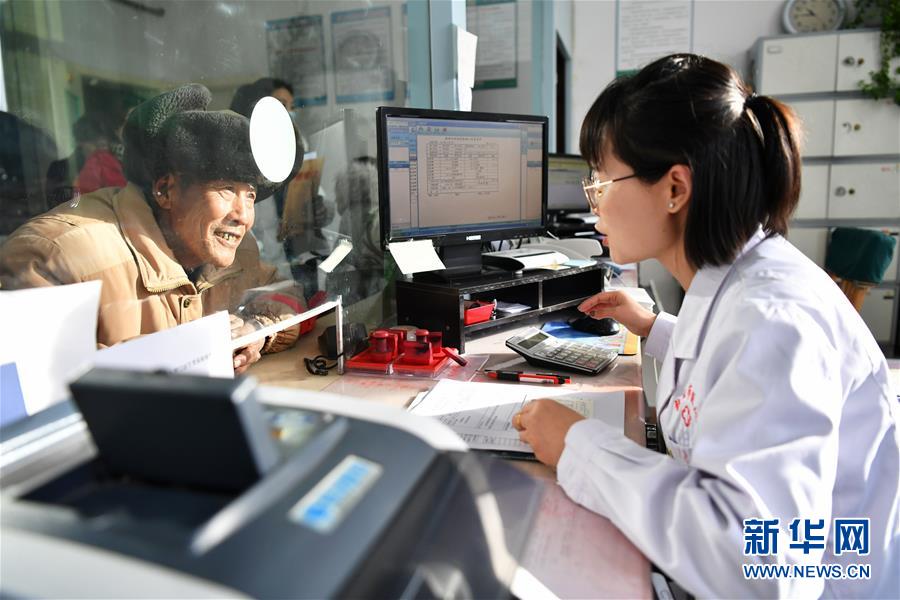 敦煌市医共体工作人员在敦煌市医院为患者和家属办理住院结算手续(2018年11月27日摄)。新华社记者 陈斌 摄