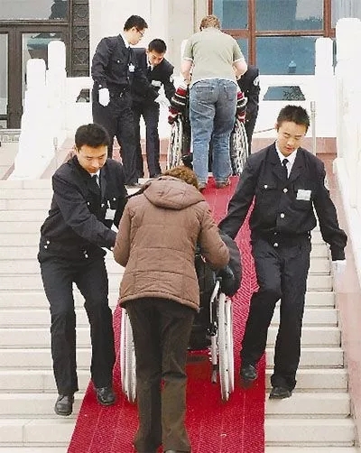△毛主席纪念堂工作人员为瞻仰群众服务