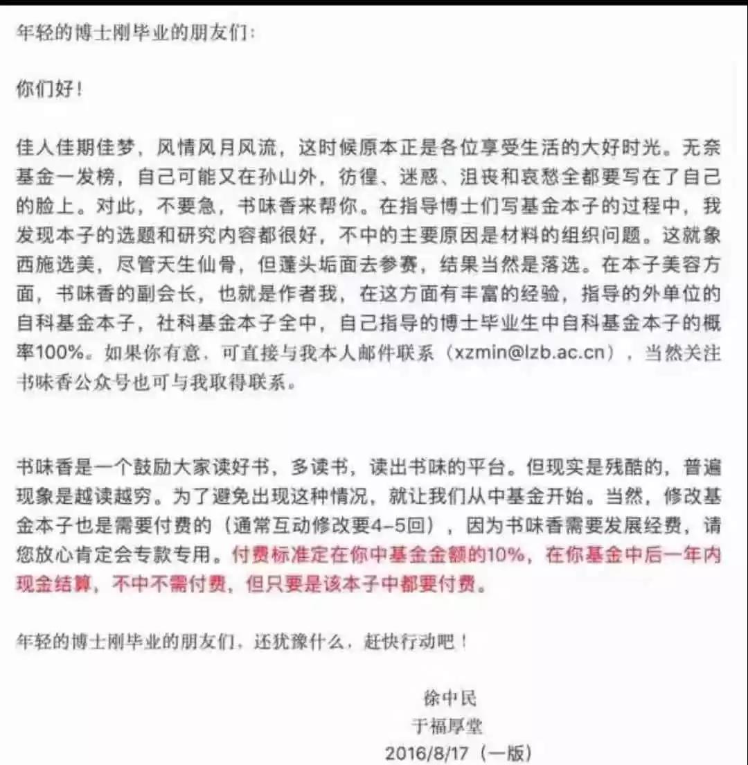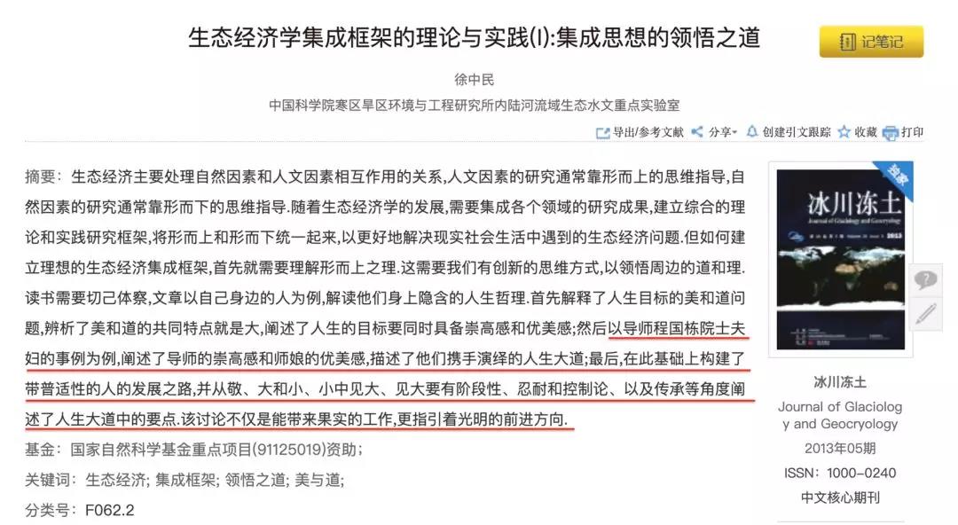 当你的文章狗屁不通时,多来点马屁也是能发地。这位彩虹屁的作者是来自中科院的徐中民教授,他今天的身份是中科院的博士生导师。 再看这位教授的其他论文,我才发现,原来这样的奇葩论文,远远不止一篇。 对此,我只有一个感受: 牛逼!这也可以?太牛逼了! 比如这篇国家自然科学基金项目的《卓越之路——变化、持久和永恒》,把科研论文写出了哲学玄幻小说的范。 又或者这篇《风行水上——论科研人员之道》,也是国家自然科学基金项目。 应对妖魔鬼怪?防止走火入魔?打掉魔头? 看到这几个步骤后,我才明白了这篇文章的苦心。 写的哪里是科研人员,分明是拜入华山派后林平之的心路历程。 在他的个人微信公众号上,这位教授用一张图片总结了自己这些年来的研究成果。 兄弟一二三四五、兄弟个十百千万…… 这是什么? 这是新水浒传片尾曲《兄弟无数》的歌词啊! 怎么徐中民教授又从华山跳到梁山了? 在教授丰硕的研究成果中,上面出现的这些雄文,都刊发在一本名为《冰川冻土》的杂志上。 这是一本末世流科幻小说吗?带着好奇,我去搜了下,没想到被雷得外焦里嫩: 这是一本由中国科学院创办,寒区旱区环境与工程研究所主管的期刊,等级是北大核心期刊,CSCD核心期刊。 换句话说,徐老师投的就是自己所在单位的杂志。 而这本期刊的主编,程国栋,就是徐教授论文中的恩师,师娘的丈夫。 多少人想发都发不上的核心期刊杂志,随便一期就用几十页的篇幅刊载了他门下弟子热情赞誉师娘的论文。 搜索程国栋主编的信息,可以看到他的更多履历和学术背景。 按照两条时间线,徐教授应该是在研究生时代就认识了自己的这位程导师,在他门下学习跟随了二十多年。 徐教授的论文是怎么过审的?现在的核心期刊是会打字都可以随便发了吗? 我带着好奇,查询了杂志官网公布的发稿流程。 按照介绍,每篇发表的稿件都需要经过4次审核,编辑初审,两名外部专家再审,程院士终审。 这样看来,也不是识字就能发,还得是有严格的审核流程。 这说明了两件事,要么院士看不懂文中的马屁所在,要么是这么多年来他认为马屁就是自己这位学生的学术精神了。 而据这位徐教授透露,自己不仅善于拿到国家自然科学基金,社会科学基金;自己指导的学生也能拿到,他还提供相应的收费服务。 ![]() 报酬是,每次拨款基金金额的10%作为服务费。 在发表这篇论文的2013年,徐教授举办了一次讲座。 讲座主题是:怎样写论文和文章? 看似严肃,但在第一页文本就道出了真相: ![]() 之后的几大秘籍,分别是化妆法,掺沙子,换汤。 具体来说就是,一个意思不同的表达,把各种论文和主题混合,把不同的模式搬到自己的研究主题上来。 同样,对于如何写英文论文,徐教授也给出了办法: ![]() 不知道知网,我还不知道抄么? 一位徐教授曾经带过的研究生在网上写下了对这位传奇老师的评价: 天才型人物,视钱财功名于尘土。 我怀疑他少写了一句: 平生唯好马屁。 ![]() 在读完徐教授的几篇雄文后,这位研究生评价: 与徐中民老师相识,我才真正懂得学问之道为何物,我才真正懂得一个人的心胸和视野可以宽广到什么样的高度。 由此也明白了做什么样的人,生命才有意义,走什么样的路,生活才会幸福。 而对他的影响,这位学生感叹: 拯救了我的灵魂,让我的生命重生; 下定决心考博深造,向徐中民老师看齐。 知乎上有个问题,叫“舔狗舔到最后应有尽有”,已经有人将徐教授这段传奇经历贴了上去。 昨天晚上,《冰川冻土》已经致歉,说将要撤下这篇文章。程国栋院士也出来表态了。 我2011年从领导岗位退下来后对期刊的关心很少。这两篇文章的发表我事先一无所知,但作为主编事后没做任何处理,应负重要责任。我已正式向领导申请引咎辞职,辞去主编的职务,并对由此造成的不良影响,诚恳地向广大读者道歉! 显然,如果这篇7年前发表的文章没有被扒出来,学术界会继续风平浪静,岁月静好。 …… 不过,看到知乎上一个忧心忡忡的回答,我突然惊醒了。 很多人都嘲讽这个作者,但我真的觉得…… 是不是导师对这个作者不好或是压榨得太厉害?导致这个作者赌上自己一生的前途,也要拉导师和师母下马? 细思恐极。 (责任编辑:晓歌) |