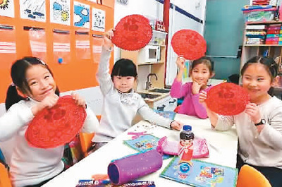 荷兰代尔夫特中文学校学生在春节期间做手工。
