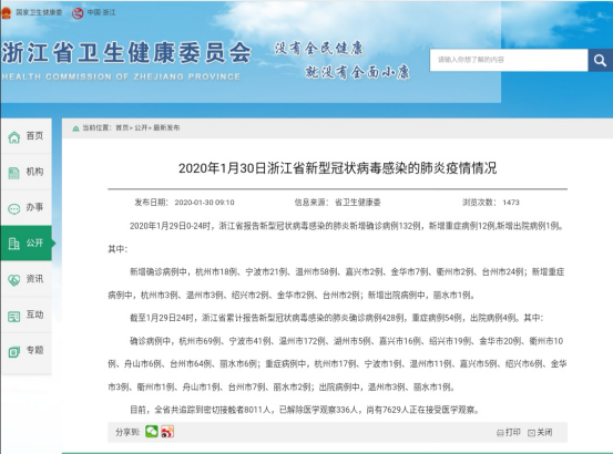 【环球网综合报道】1月29日召开的中央应对新型冠状病毒感染肺炎疫情工作领导小组会议指出,当前疫情防控正在全面推进,防控力度持续加大,但疫情仍处于扩散阶段,局部地区有迅速上升趋势,形势复杂严峻。根据国家卫健委30日凌晨发布的最新疫情数据,截至29日24时,国家卫生健康委收到31个省(自治区、直辖市)和新疆生产建设兵团累计报告确诊病例7711例。 环球网30日梳理国家卫健委及各地卫健委最新通报数据发现,已有14个省(自治区、直辖市)确诊病例超过100例。 其中湖北省卫健委30日最新通报全省累计4586例,而浙江则成为湖北之外的第二个“重灾区”——累计确诊428例。此外,广东(311例)、河南、湖南、安徽、重庆、江西、山东、四川、江苏、北京、上海以及福建(101例)紧随其后。 ![]() 上述各省(自治区、直辖市)卫健委最新通报数据梳理如下: 湖北:截至1月29日24时,湖北省累计报告新型冠状病毒感染的肺炎病例4586例,已治愈出院90例,死亡162例。 浙江:截至1月29日24时,浙江省累计报告新型冠状病毒感染的肺炎确诊病例428例,重症病例54例,出院病例4例。 广东:截至1月29日24时,广东省累计报告新型冠状病毒感染的肺炎确诊病例311例。目前,重症34例、危重症12例,无死亡病例,累计出院6例。 河南:截至1月29日24时,全省累计报告新型冠状病毒感染的肺炎确诊病例278例,重症37例、危重4例、死亡2例、治愈2例。 湖南:截至1月29日24时,湖南省累计报告新型冠状病毒感染的肺炎确诊病例277例,累计报告重症病例38例,现有重症病例29例,死亡病例0例,出院病例0例。 安徽:截至1月29日24时,全省累计报告新型冠状病毒感染的肺炎确诊病例200例,累计出院病例2例,无死亡病例。 重庆:截至1月29日24时,重庆市累计报告新型冠状病毒感染的肺炎确诊病例165例,重型病例18例,危重型病例4例,出院病例1例。 江西:截至1月29日24时,江西省累计报告新型冠状病毒感染的肺炎确诊病例162例,现有重症病例16例,其中出院病例3例。 山东:截至1月29日24时,山东省累计报告新型冠状病毒感染的肺炎确诊病例145例,出院病例1例。 四川:截至1月29日24时,我省累计报告新型冠状病毒感染的肺炎确诊病例142例,涉及19个市(州)。 江苏:截至1月29日24时,江苏省累计报告新型冠状病毒感染的肺炎确诊病例129例,其中,重症病例1例,出院病例1例。 北京:截至1月29日20时,本市累计确诊病例111例,其中出院4例,死亡1例,在治106例确诊病例均在市级定点医院进行隔离治疗,普通型90例,重型14例,危重型2例。 截至30日8时,本市累计确诊病例114例,其中出院4例,死亡1例,在治109例确诊病例均在市级定点医院进行隔离治疗。 上海:截至1月29日24时,上海市累计发现确诊病例101例。 福建:截至1月29日24时,福建省累计报告新型冠状病毒感染的肺炎确诊病例101例(危重症3例、重症12例,无死亡病例)。 (数据来自各地卫健委官方发布) (责任编辑:晓歌) |